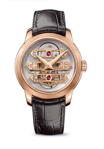 This new showpiece in Girard-Perregaux's Haute Horlogerie collection is the embodiment of a unique heritage whose origins date back to the middle of the 19th century. At this time, the La Chaux-de-Fonds watchmaker Constant Girard-Perregaux was conducting research in the field of the Tourbillon escapement. In 1860, he created a timepiece which was awarded a first-class prize by the Neuchatel Observatory: its Tourbillon movement featured three parallel bridges, under which the barrel, centre wheel and Tourbillon were aligned.